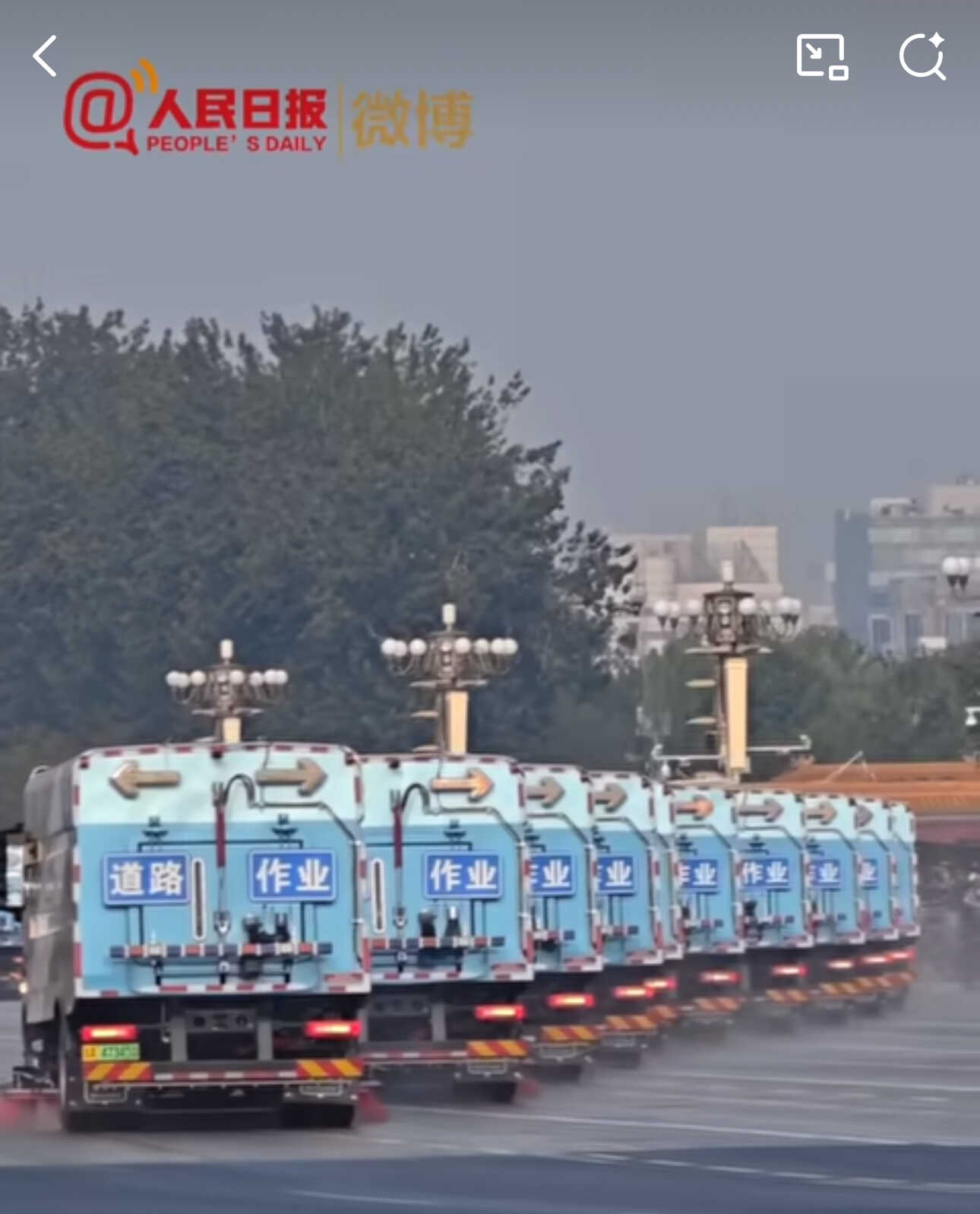 此外,早在阅兵开始前,长安街就迎来了整齐划一的“第零方阵”。来自北京环卫集团的23辆比亚迪纯电动环卫车T18组成了“绿色”方阵,再次对长安街开展清扫作业。(中国经济网记者 郭跃)