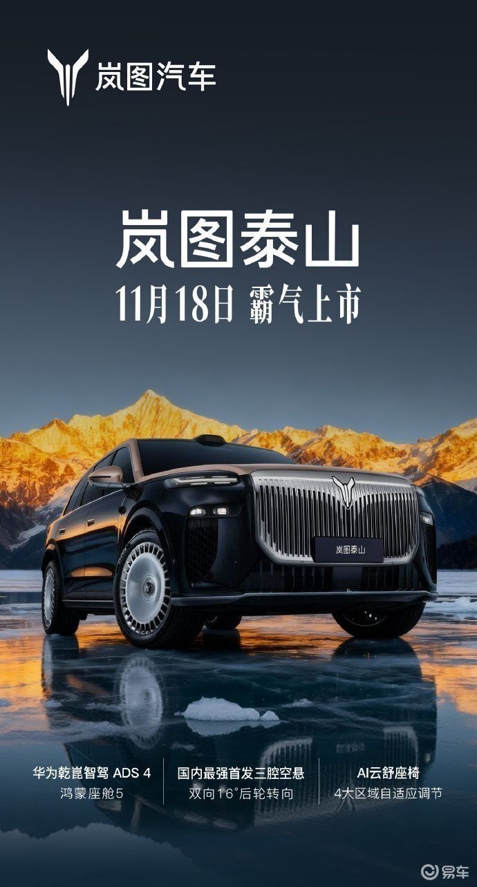 未来,岚图泰山将持续以“东方高定”引领行业。全铝合金航空材质底盘,打造刚柔并济驾乘质感;同级唯一三腔空悬可自适应路况调节,配合EDC魔毯功能,让全场景出行如履平地;后轮转向加持,旗舰尺寸车身也可轻盈灵动。“东方高定”不仅在于设计引领,更在于技术引领。