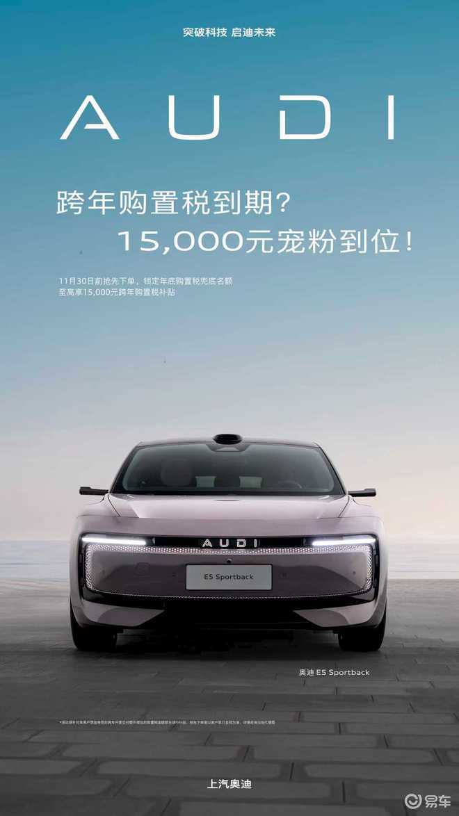 豪华电动品牌AUDI首款战略车型奥迪 E5 Sportback也在火热交付中,持续积累用户的信赖与好评。随着新能源购置税政策调整倒计时,上汽奥迪推出奥迪E5 Sportback跨年购置税补贴计划:11月30日前下单,如因非用户原因导致2026年交付,即可享受至高15,000元购置税补贴。