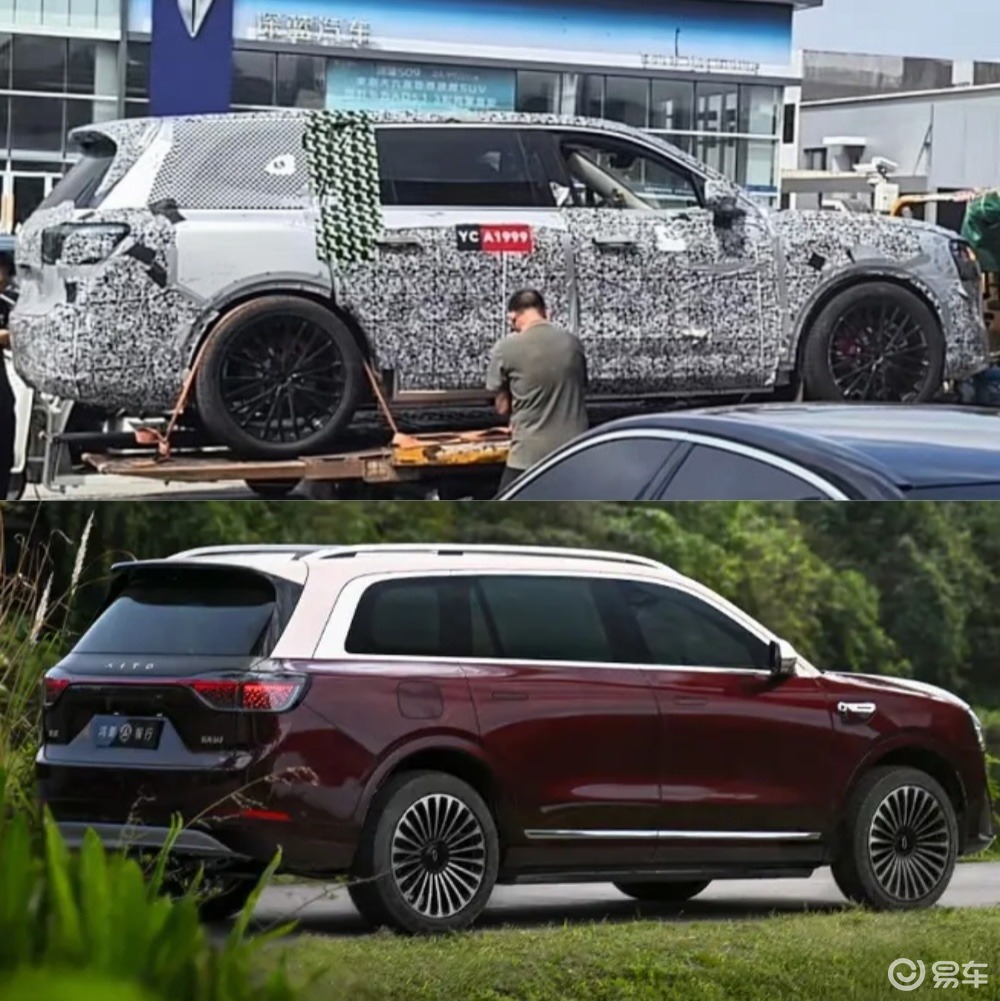 或为问界M9L新车(图上)和问界M9(图下)对比