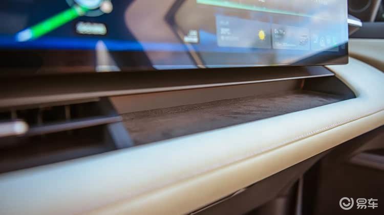 拉开车门,内饰质感也超出预期,作为质检员,我必须重点关注用料和做工。车内大面积采用皮质与仿麂皮材质包裹,膝部以上皮革覆盖率达44%,触感柔软细腻,缝线工整无瑕疵。27寸超薄宽幕显示屏是内饰亮点,4K高清分辨率搭配镁合金超薄外壳,强光下依然清晰,3D实时渲染界面还能随光线自动切换日夜模式,科技感与实用性兼顾。中控台布局简洁,物理按键少而精,空调出风口采用隐藏式设计,让整体更显规整。