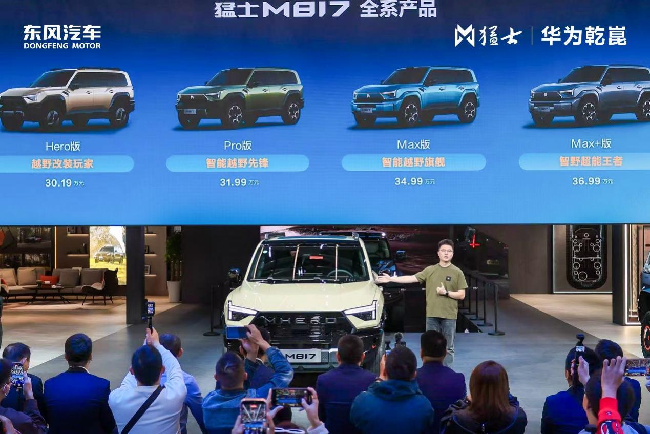 2024年2月,东风猛士科技与华为智能汽车解决方案BU达成战略合作。2025年4月22日,在华为乾崑智能技术大会上,双方合作的首款车型——猛士M817完成全球首秀。2025年11月21日的广州车展上,“越野改装玩家”猛士M817 Hero版硬核登场。