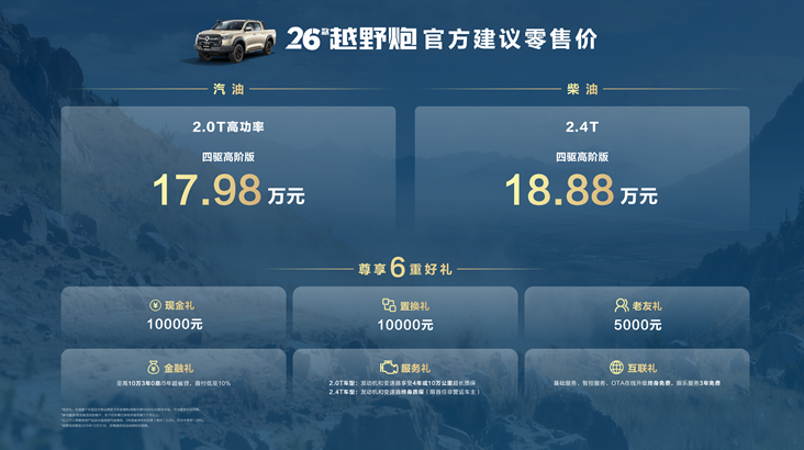2026款越野炮:9.98万元-14.28万元