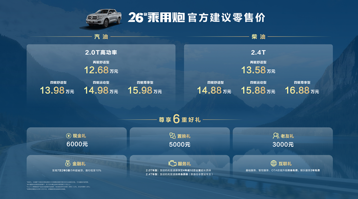 2026款乘用炮:12.68万元-16.88万元