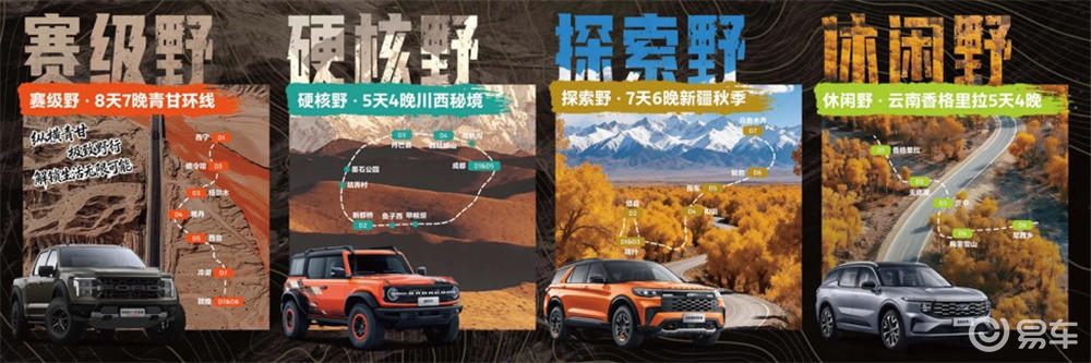 与此同时,福特手握三大王牌:覆盖全动力场景的丰富产品矩阵,从路上延伸至目的地的沉浸式体验,以及由全球视野与本地社群共同构筑的深厚探险文化。以 “四级野”(赛级野、硬核野、探索野、休闲野)深度诠释品牌“探索/野行”的品牌定位,精准定义不同层级的用户需求、产品能力与应用场景,激发每一种天性,为每一次出发做好准备。
