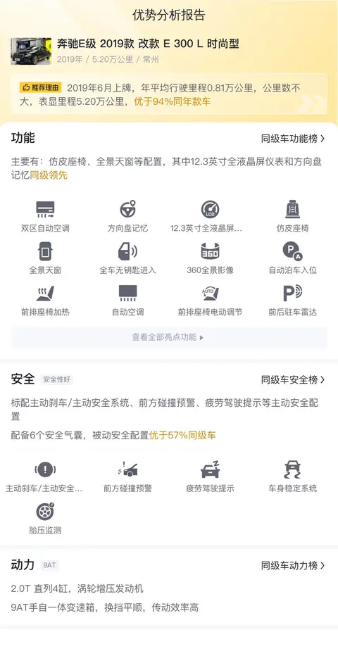 根据大数据预估显示,这辆E级车的市场价格应在24.12万至28.56万之间。考虑到其车况良好且里程数适中,这一估价较为合理。在用车成本方面,如上图所示,这辆车的年均综合用车成本约为1.5万元左右,这对于一辆豪华轿车来说,是一个相对合理的支出水平。