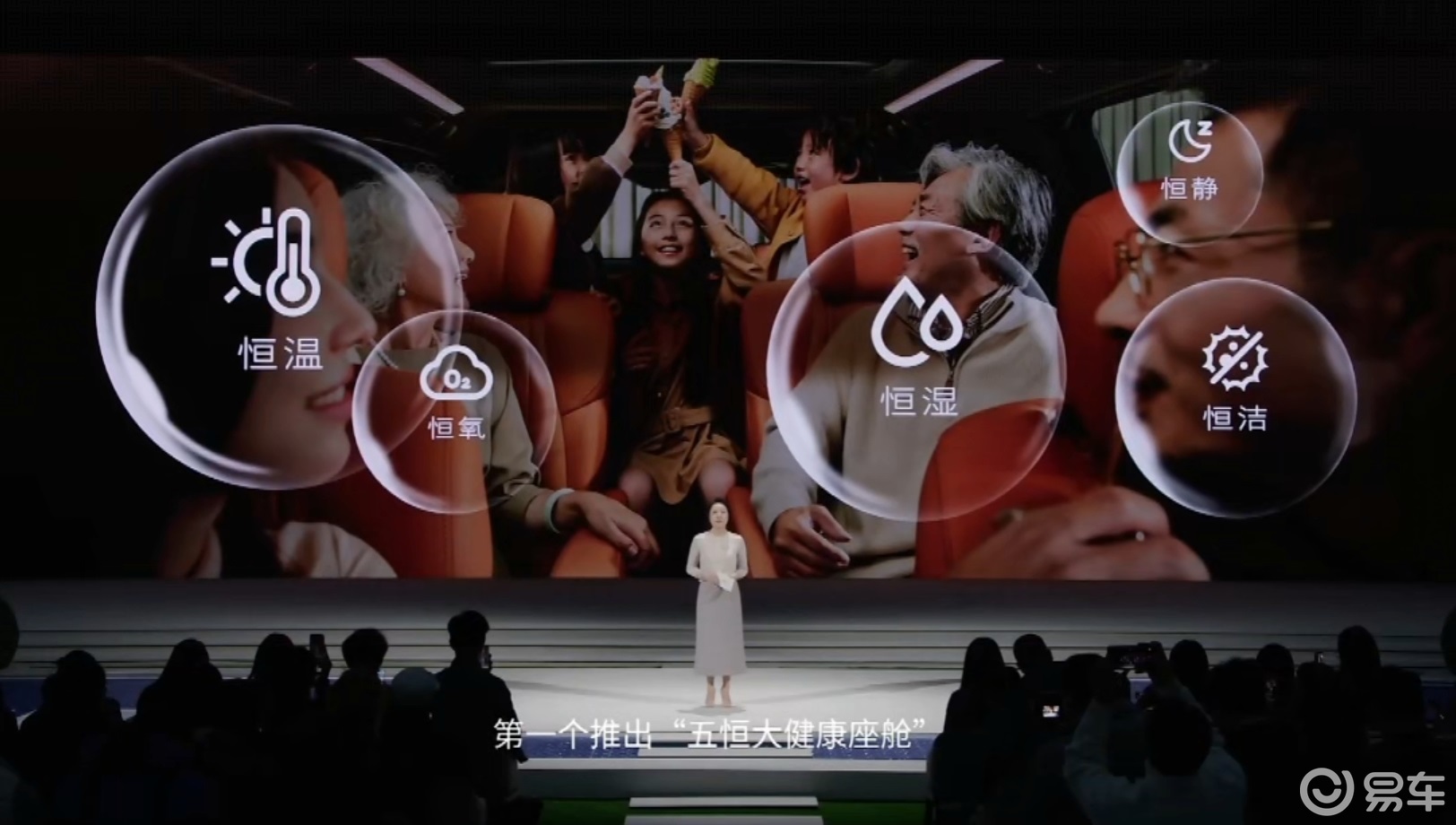 值得关注的是,至境世家提出了“五恒大健康座舱”概念,试图对车内的空气、温度、湿度、洁净度和静谧性进行综合管理。它采用了松下nanoe™X空气净化技术,车顶灯和屏幕都通过了低蓝光护眼认证,座椅皮革也达到了婴幼儿接触安全标准。厂家表示,车内电磁辐射比手机还低,意在让敏感人群也能安心乘坐。