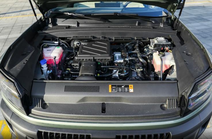 动力方面,福特智趣烈马增程版搭载1.5T增程器,适配双电机驱动系统,综合功率310kW,综合扭矩600N·m,相当于一台3.0T V6发动机的性能表现。此外,新车还配备了43.7kWh磷酸铁锂电池,CLTC工况下纯电续航220km,在满油满电的条件下,综合续航可达1220km。至于纯电版,依旧是双电机配置,综合功率332kW,综合扭矩575N·m,搭配105.4kWh电池组,CLTC纯电续航可达650km。在硬核越野参数方面,新车采用非承载式车身结构设计,接近角30°、离去角32°,最小离地间隙220mm,涉水深度达600mm。