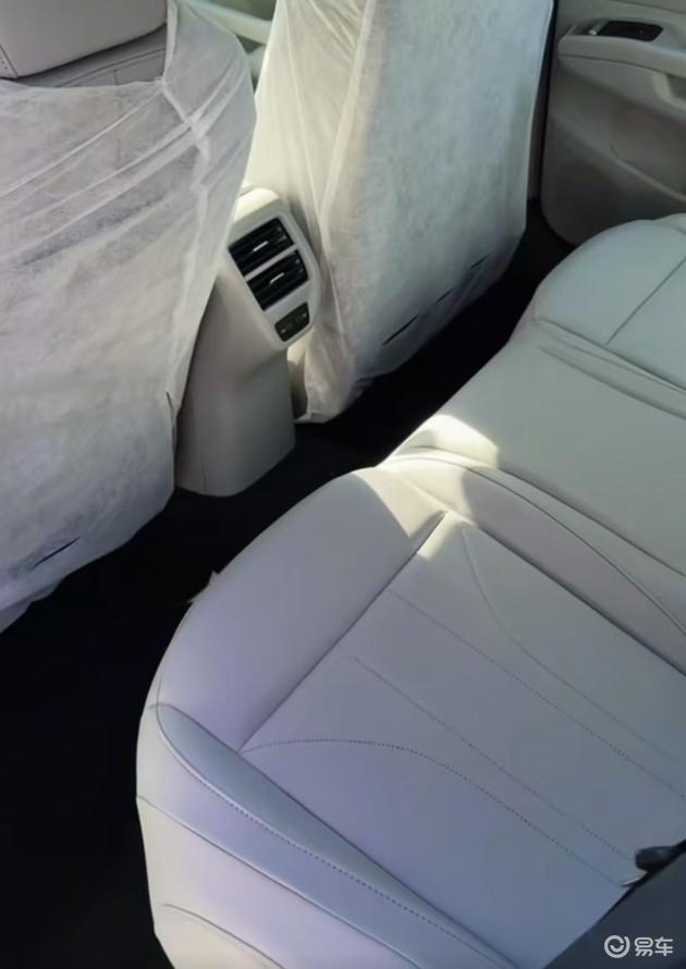 我们可以看到大众朗逸Pro的后排地板中间仍然有凸起,但后排坐垫有所加长,配备了后排空调出风口、中央扶手以及头枕等。