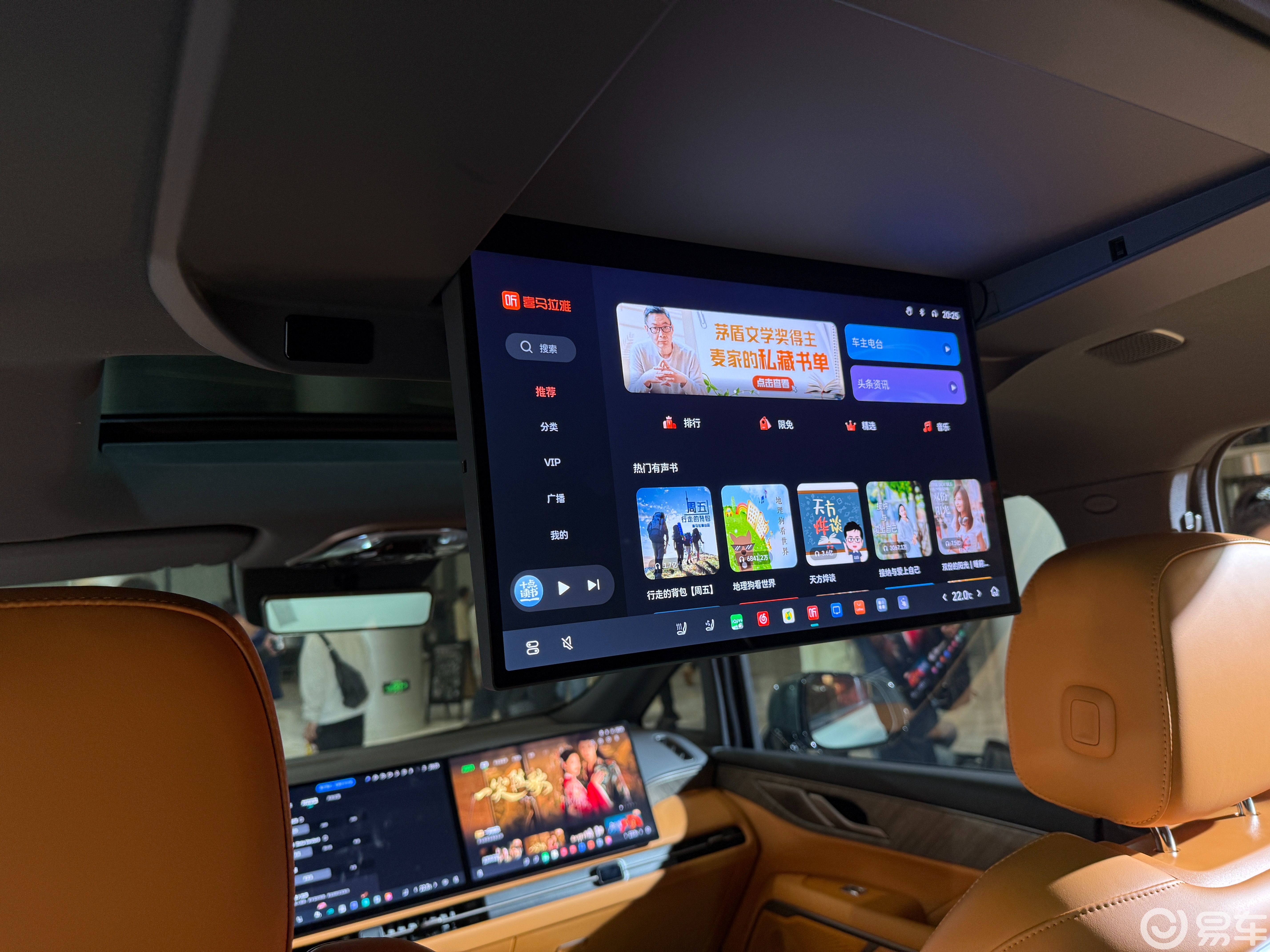 内饰方面,高山7车内有着不错的档次感,造型方面也是延续自高山8和9,中控屏幕尺寸为15.6英寸,副驾驶娱乐屏的尺寸同为15.6英寸,这两款屏幕组成了双屏。除此之外,后排还有一个17.3英寸的拓展屏,可以满足各个位置乘客的需求。