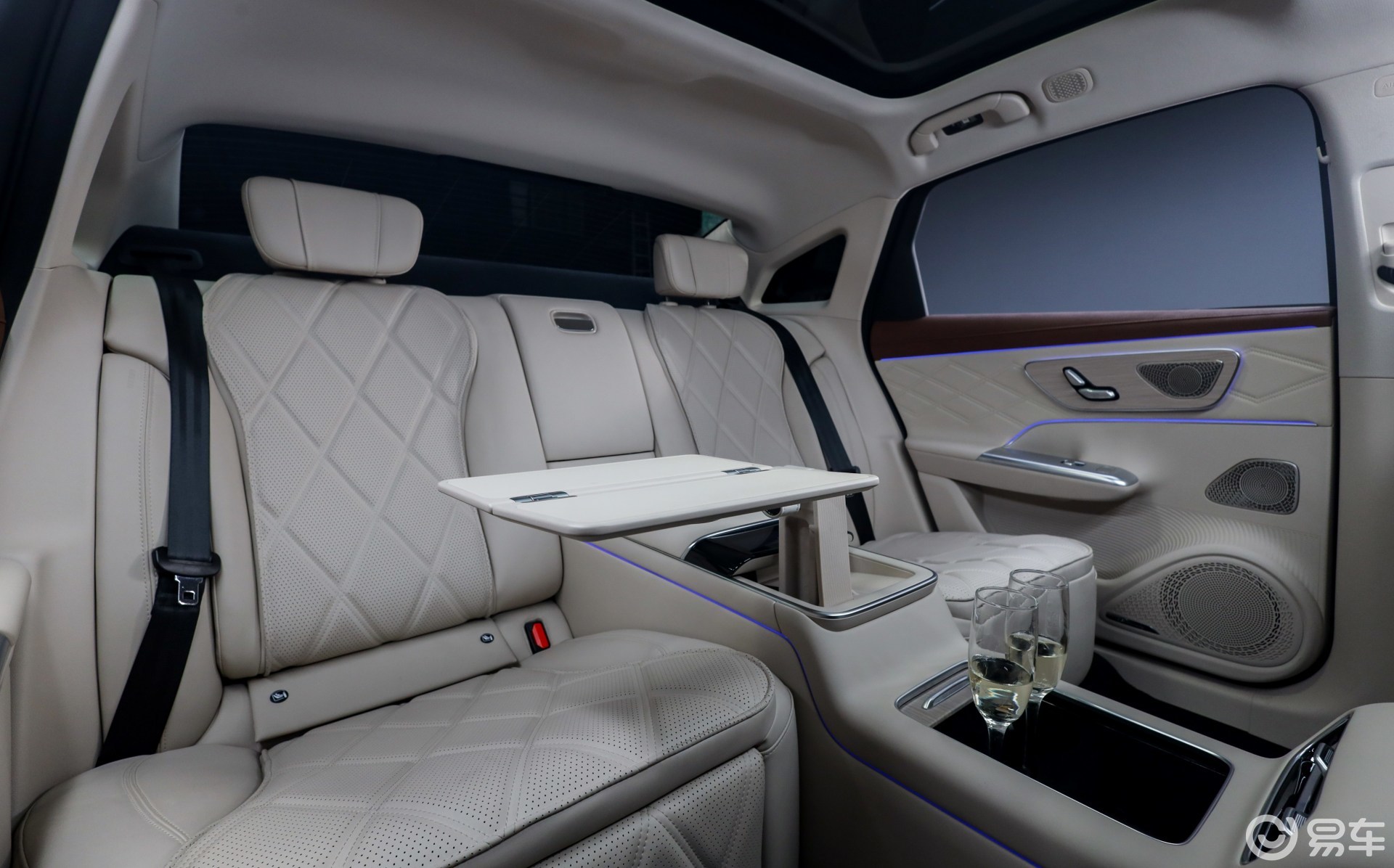 不过在舒适配置方面,22.69万元的四座尊享版确实有叫板传统欧系豪车的实力。它的后排升级为两张独立座椅,中间是行政智控中岛,座椅自带通风/加热/按摩/倾角24.5°-32°电调功能,还增加了容积13.7L的压缩机式冷暖冰箱、可无极悬停的折叠商务桌板,更“尊的后排体验”很有点百万级旗舰轿车的架势。