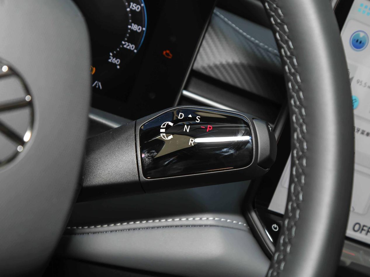 来到车内,整体的线条比较横平竖直,全液晶仪表和中控屏都是悬浮式设计,我觉得比以前的内嵌式设计,看着更有科技感,中控区域也取消了传统的挡把,换挡机构放在了方向盘的右下方,这种“怀挡”最初是奔驰先用的,后来应该是从新能源车开始广泛流行的吧?