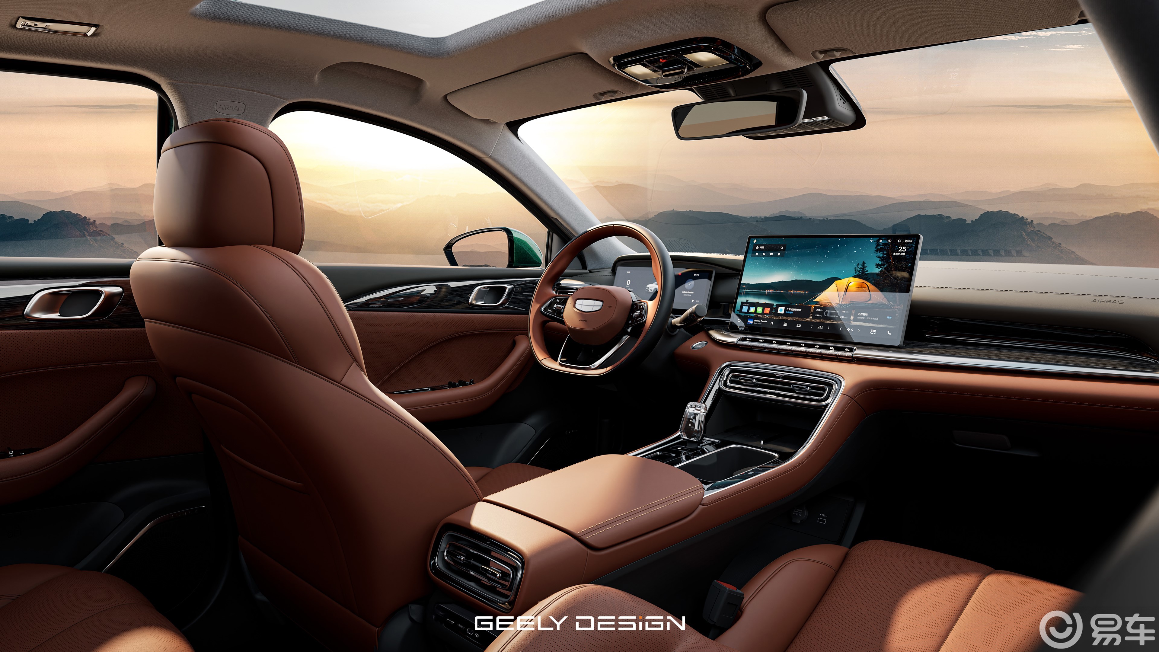 前脸设计极具辨识度,12根镀铬纵向直瀑立柱构成的格栅,灵感源自“十二时辰”“十二月份”等中国传统满数意象,既寓意“圆满周全”的美好祝愿,又以模块化设计打破传统格栅的单调格局,尽显大气磅礴。“吉目远眺LED前大灯”采用豪华车型的灯光安全标准,照射距离超170米,大幅提升夜间行车视野清晰度,为安全出行保驾护航。车身侧面线条流畅灵动,0.618黄金比例腰线与2.2倍轮高比的精准搭配,配合1885mm同级最宽车身、1.27宽高比、18英寸五星之盾轮毂以及544mm超低重心,不仅赋予车辆优雅的视觉姿态,更奠定了稳健的操控基础。