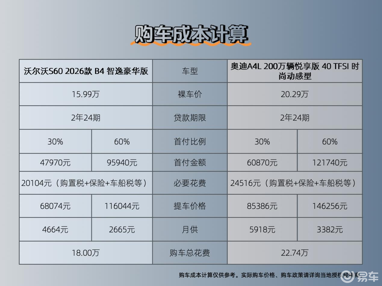 与此同时,奥迪A4L也有较大的优惠,入门版终端价格来到20万左右,那年轻人第一款豪华车,到底选奥迪A4L还是沃尔沃S60呢?我们接下来算算这笔账,看选谁更合适!...
