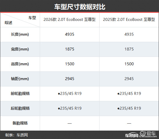 车尾方面,新款车型依旧采用贯穿式尾灯组,两侧融入了福特性能车经典的“三柱型”设计元素,点亮后效果醒目;后包围区域经过简化处理,取消了镀铬饰条与排气装饰,视觉上更强调整体性与简洁风格。