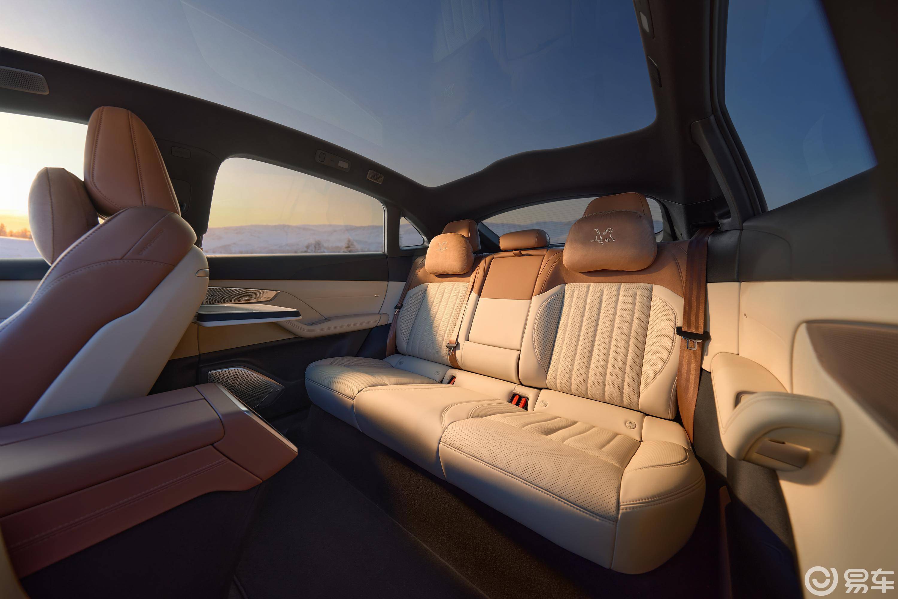 标配曙光金外观、20英寸亮银轮圈、后排右侧折叠小桌板,在马的元素上,则有“马到成功”头枕专属刺绣、门槛饰条及车机主题。内饰颜色采用全新月榕棕与云缦米双拼Nappa设计,并搭配月榕棕真皮方向盘。很有意思的是,它的拼色是前排前后拼、后排上下拼的错位双拼,不同角度来看像是“一车两面”。此外,目前购车还会赠送三个定制套装,包括整车“马到成功”专属的云感软枕、双层脚垫以及“赤逗马力”气门芯帽。