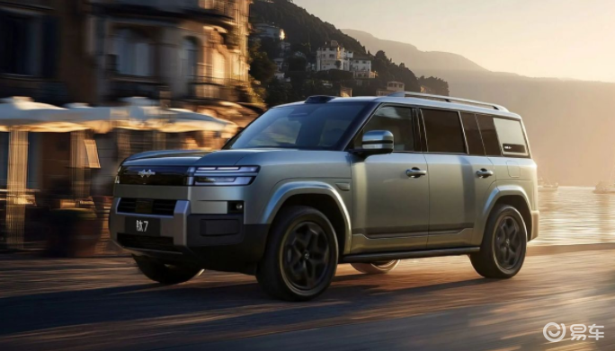 方程豹钛7则以硬派方盒子造型吸引用户,整体造型硬朗。前脸采用机甲风格,极具力量感。尽管该车是新能源车型,但并未运用过多新能源元素,传统造型门把手、外挂式储物箱和侧开尾门等越野设计元素,增强了其硬派属性。