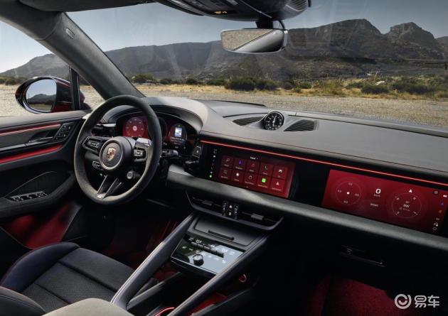 纯电 Macan GTS 虽然配备了更多智能系统,如三屏系统、通信灯带、动态氛围灯、可与车身颜色联动的 UI、GTS 专属数字界面等,但相较燃油版,个性化选择较少,缺少 GTS 专属声浪、黑色尾翼和透明尾灯等元素。